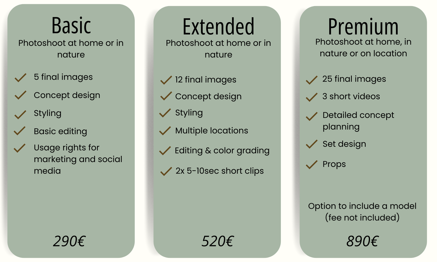 We offer companies high-quality, atmospheric lifestyle photography for products. You can send your products to us, and we’ll design a concept that supports your brand and showcases the items in authentic use.